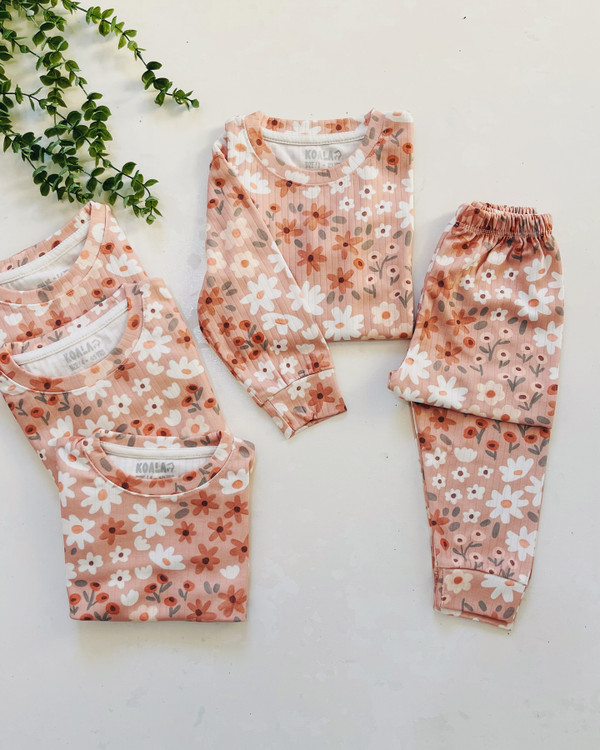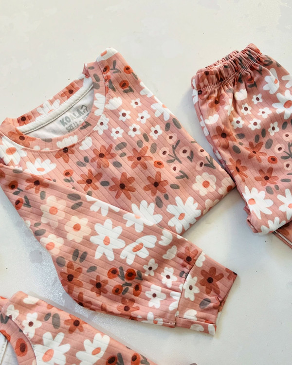 لباس راحتی گل گلی برای کمد هر بچه ای لازمه ست طرح فلاورز بدون آب رفت ضد لک